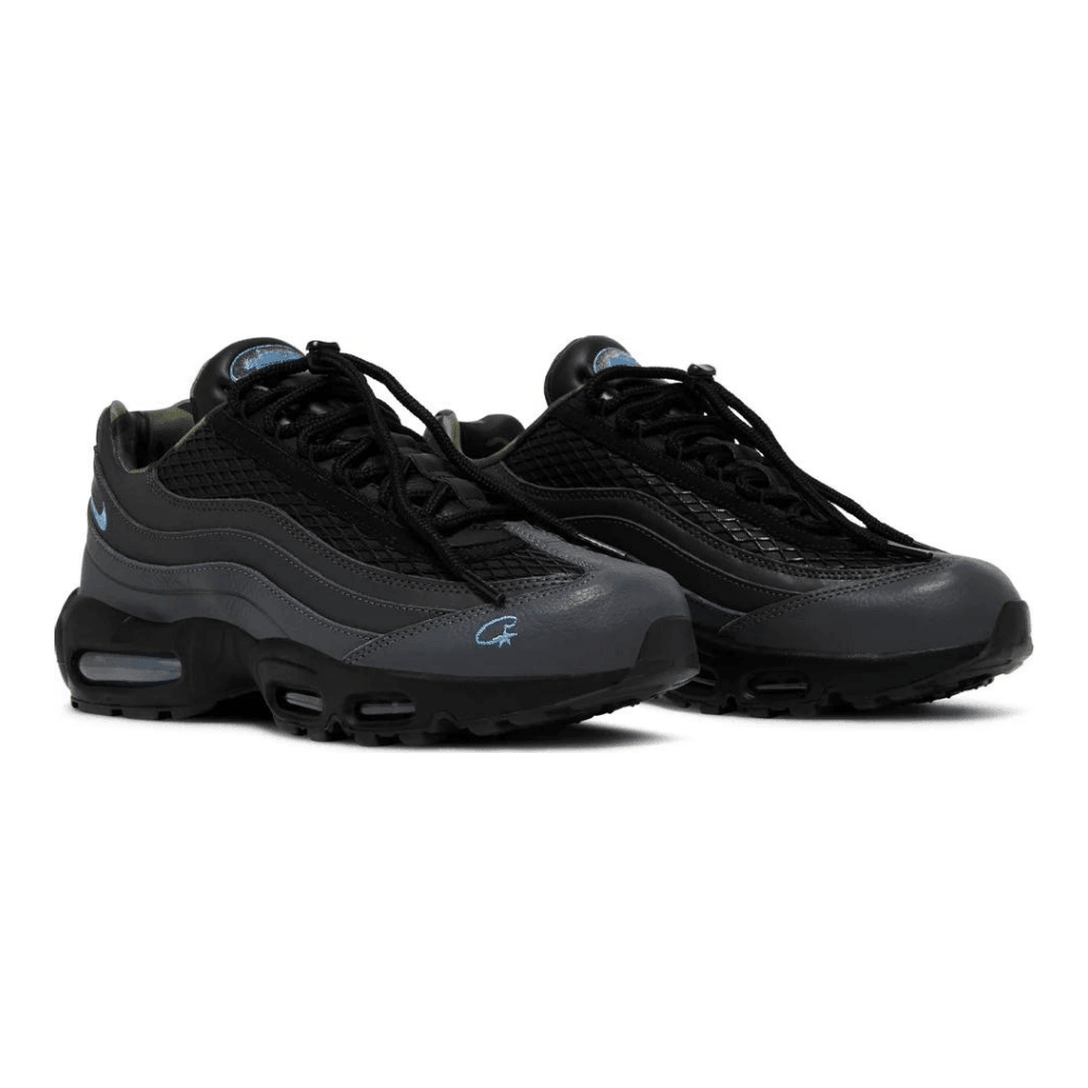 Lançado como parte do pacote ‘Rules the World’ da marca de streetwear do Reino Unido, o Corteiz x Nike Air Max 95 SP ‘Aegean Storm’ atualiza o corredor retrô com tons neutros e uma construção renovada. O laço com cordão protege a parte superior, com uma rede preta ao redor da garganta e sobreposições de couro ondulado com acabamento cinza escuro. ‘Corteiz’ está inscrito em bordado azul brilhante na lateral do sapato, complementando o logotipo Alcatraz da marca no remendo da língua. O forro interno e a palmilha são cobertos por uma estampa camuflada da floresta, trazendo um toque militar ao design elegante. Ancorando o tênis está uma entressola de poliuretano preto sólido com unidades Max Air tingidas de azul no antepé e no calcanhar.