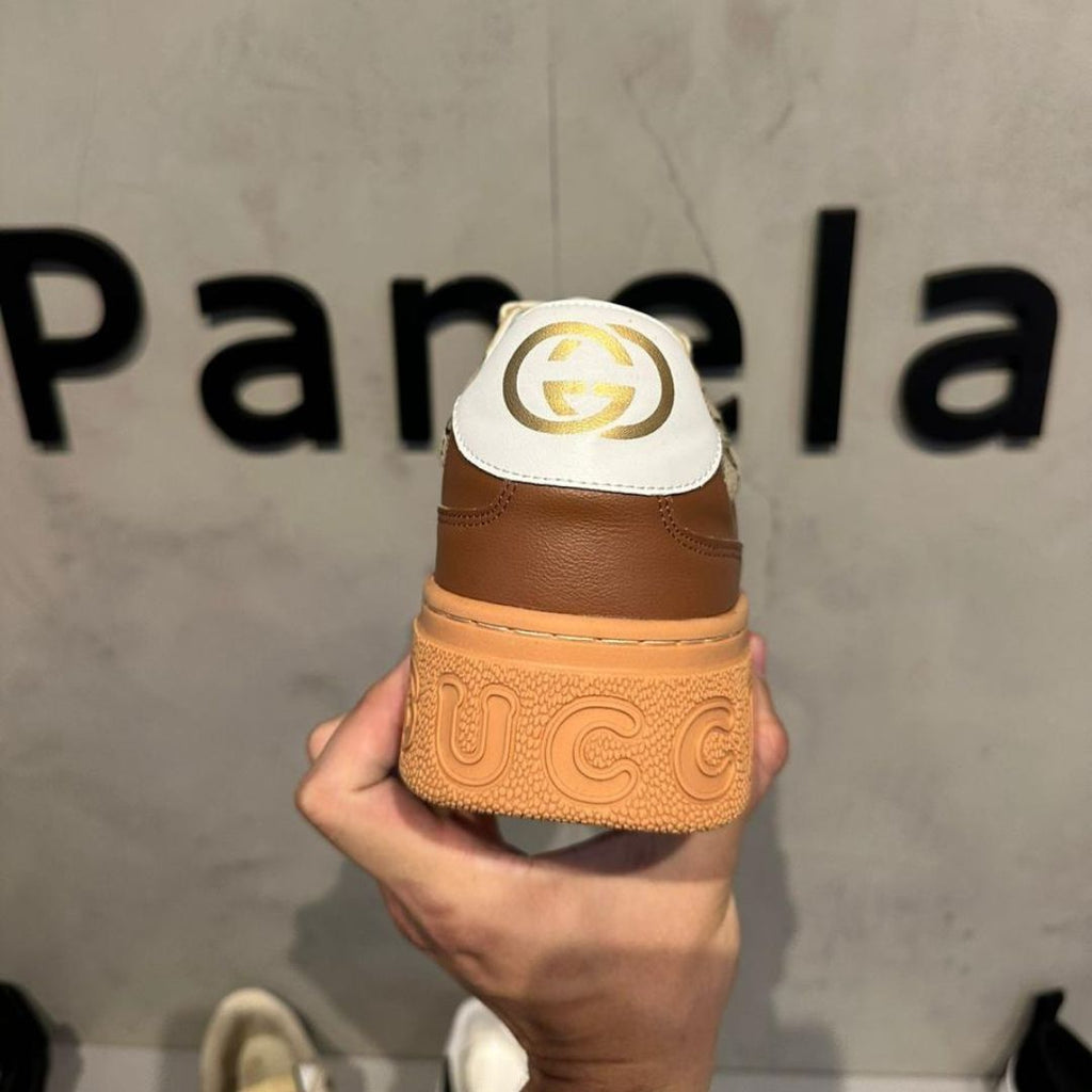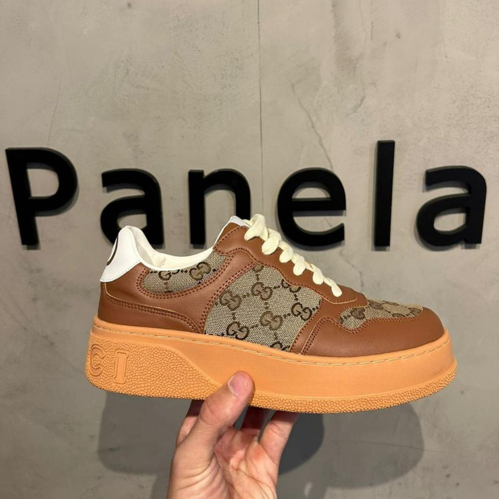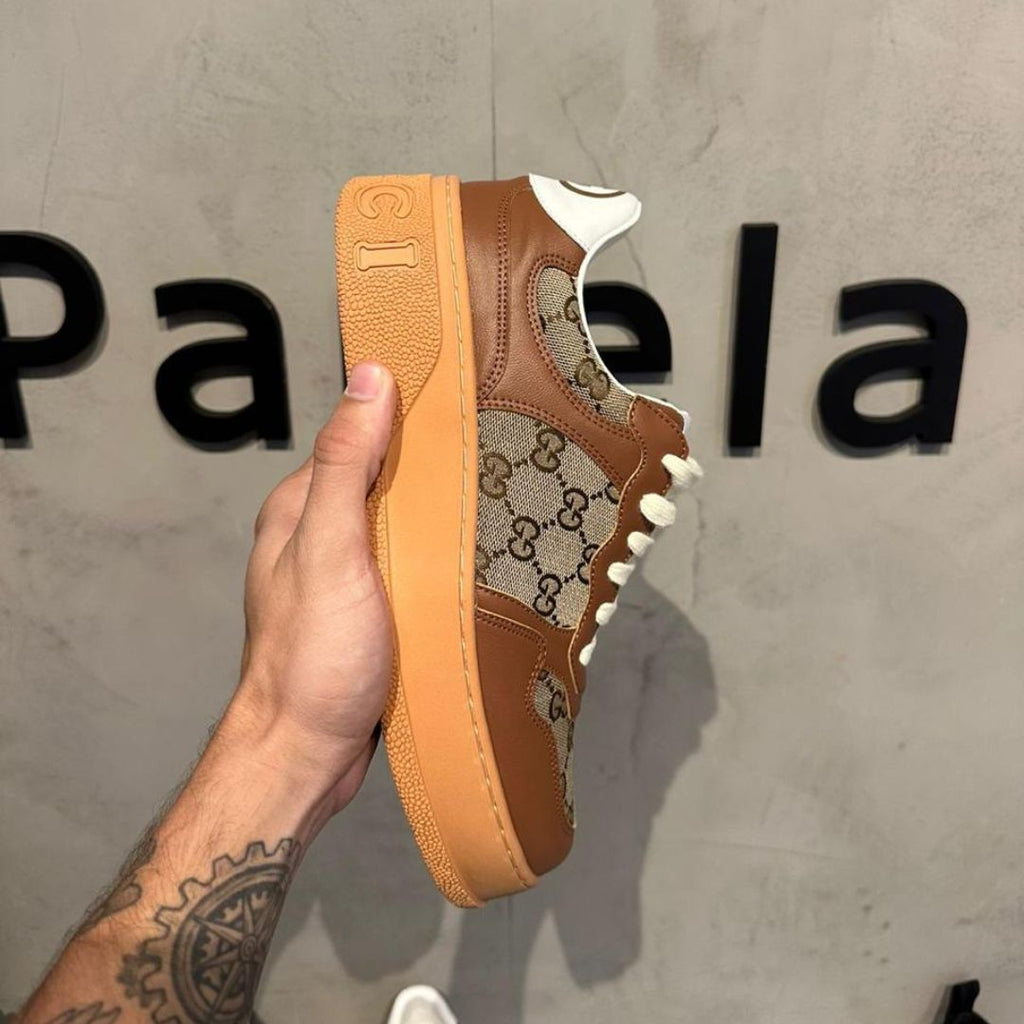 O Tênis Gucci GG Supreme de couro marrom combina sofisticação e versatilidade em um design clássico. Feito com couro de alta qualidade e adornado com o icônico padrão GG Supreme, este modelo oferece um tom de marrom elegante que complementa uma ampla gama de looks. Seu acabamento refinado e conforto excepcional fazem dele uma escolha ideal para quem busca um estilo distinto e atemporal.