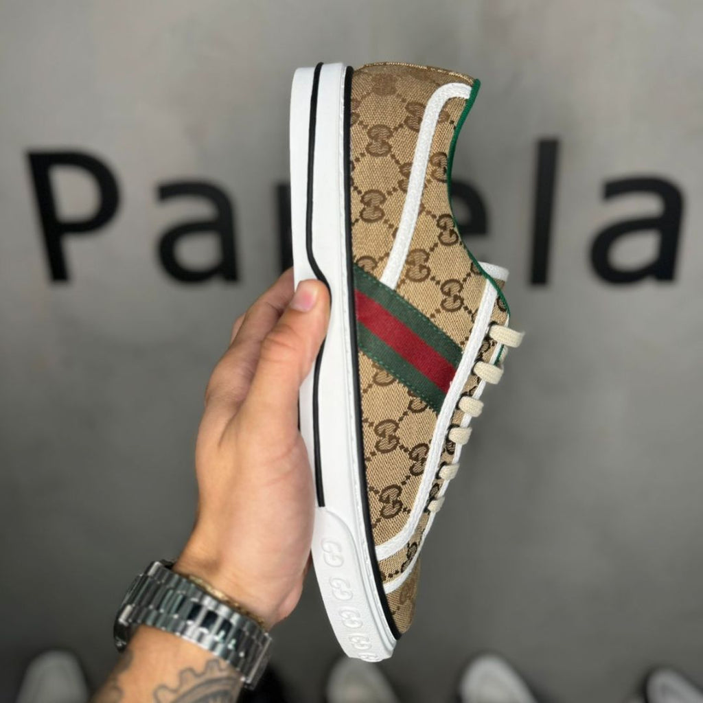 O Gucci Tênis Cano Baixo Tennis 1977 é uma homenagem ao estilo esportivo dos anos 70, reimaginado com um toque contemporâneo. Confeccionado em couro de alta qualidade, apresenta um design clean e elegante com detalhes vintage, como o logo da marca em relevo e acabamentos refinados. Com uma paleta de cores sofisticada e uma construção cuidadosa, este modelo oferece um visual clássico e versátil, ideal para quem busca um toque de luxo atemporal em seu estilo diário.
