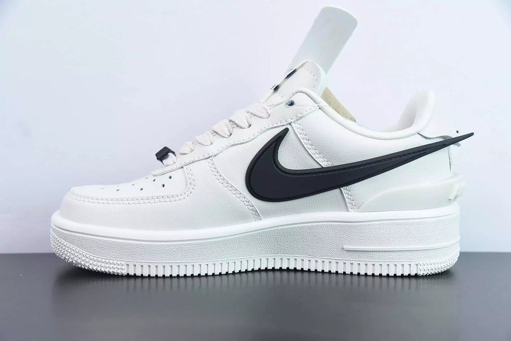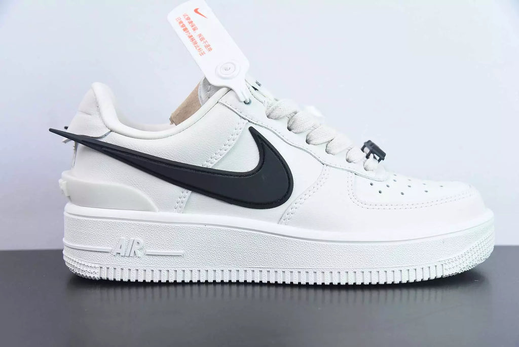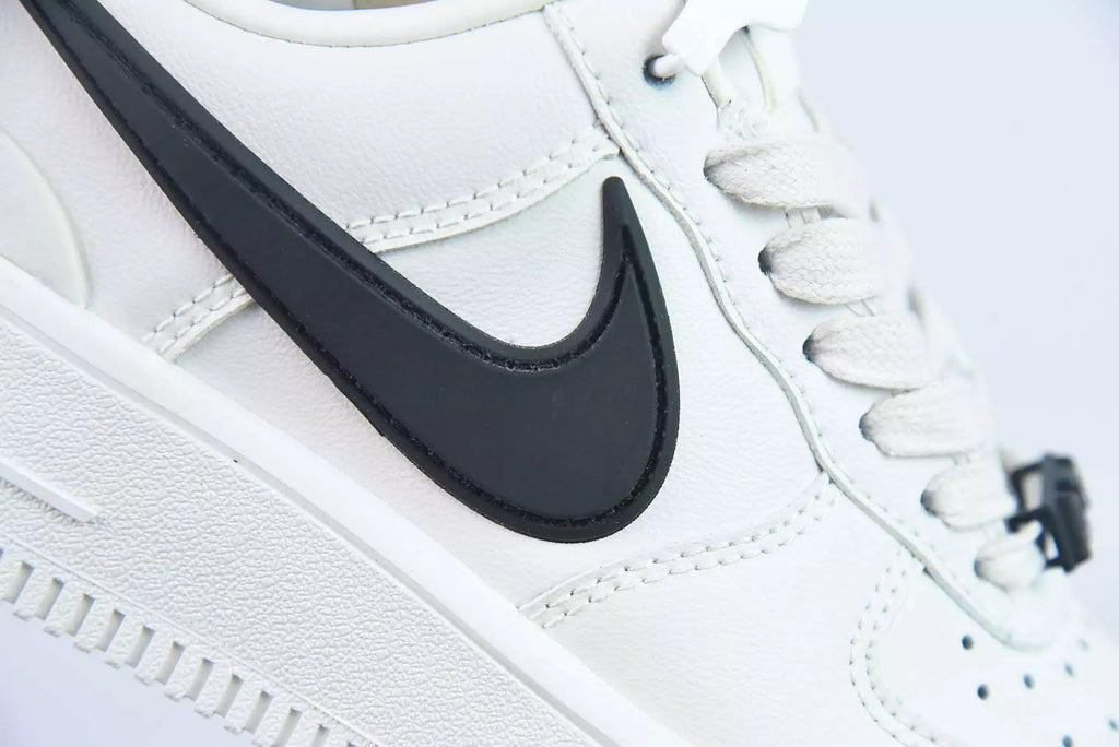 Detalhes Especiais: Swoosh preto exagerado que se estende para além do calcanhar, contraforte de TPU esculpido e branding da Ambush.
