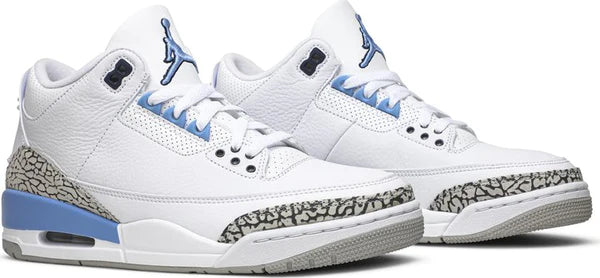 O Air Jordan 3 Retro 'UNC' chega em março de 2020 como uma homenagem à alma mater de Michael Jordan. A edição especial apresenta cores inspiradas na universidade em sua parte superior e ilhós de couro com textura dupla, com painéis com estampa de elefantes que conferem um toque icônico. Valor Blue atinge os dois logotipos Jumpman na língua e no calcanhar, enquanto a unidade Air visível na entressola e a sola de borracha envolvem o estilo.