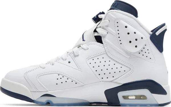 A edição de 2022 do Air Jordan 6 Retro 'Midnight Navy' traz de volta uma colorway clássica de dois tons lançada inicialmente em 2000. A silhueta legada ostenta uma parte superior de couro branco com detalhes perfurados em todo o mediopé e gola. Acentos em azul marinho pousam na língua com janela exclusiva, na aba do calcanhar moldada e nos hits da marca Jumpman que decoram a proteção de renda e o calcanhar traseiro. O tênis é montado em uma entressola de poliuretano de dois tons, aprimorada com uma unidade de calcanhar Air-sole visível e apoiada por uma sola de borracha translúcida. O Jordan 6 'Midnight Navy' 2022 será lançado em 25 de maio de 2022.