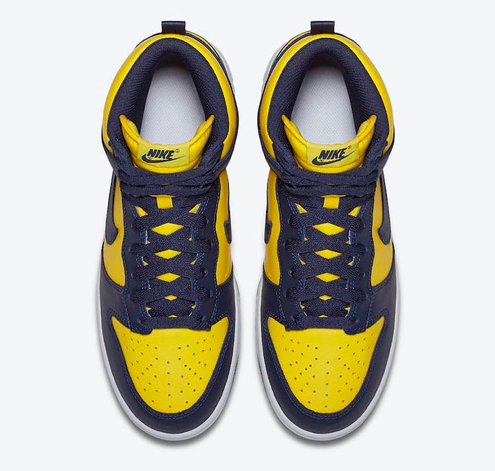O Nike Dunk High "Michigan" (2020) é um verdadeiro clássico, trazendo de volta um dos designs mais lendários da Nike com materiais premium e muito estilo.
