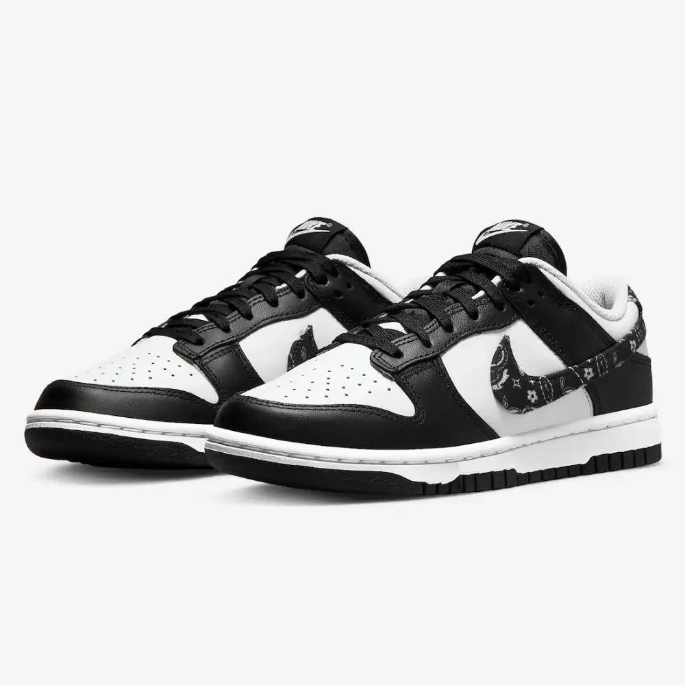 - Design sofisticado e moderno: O padrão paisley em preto e branco adiciona um toque único ao clássico Dunk, criando um visual urbano e elegante.