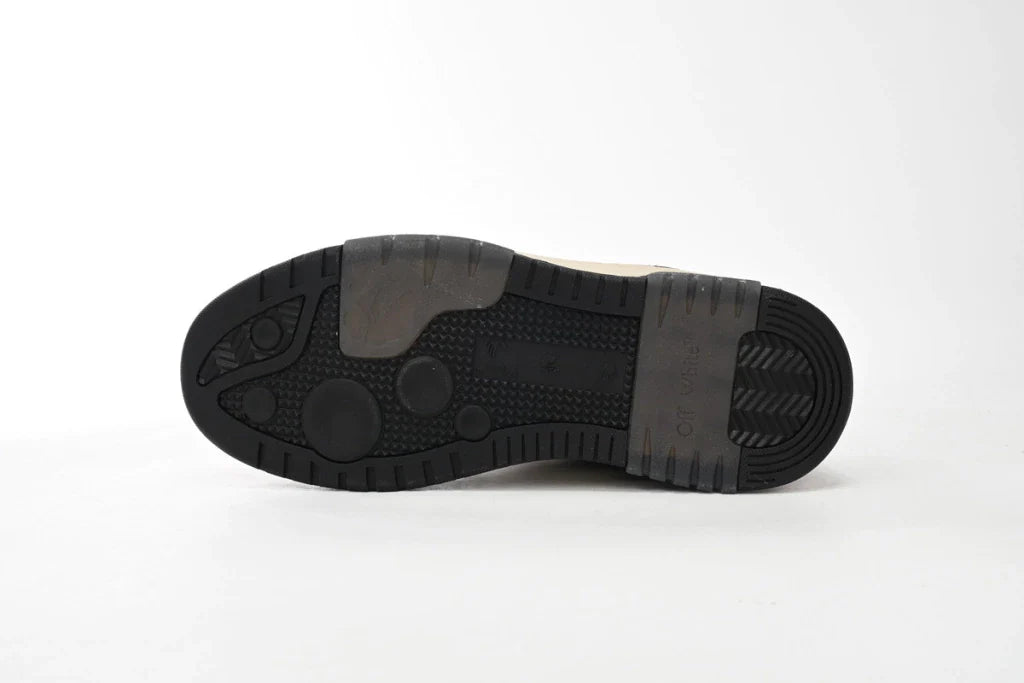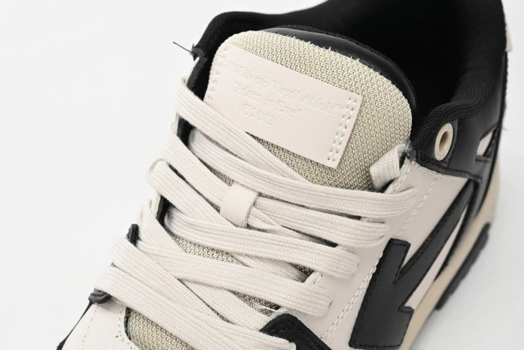 O OFF-WHITE Out Of Black Beige White apresenta uma combinação sofisticada de preto, bege e branco, oferecendo um estilo urbano refinado. A fusão de cores neutras com detalhes ousados cria um design atemporal e moderno.