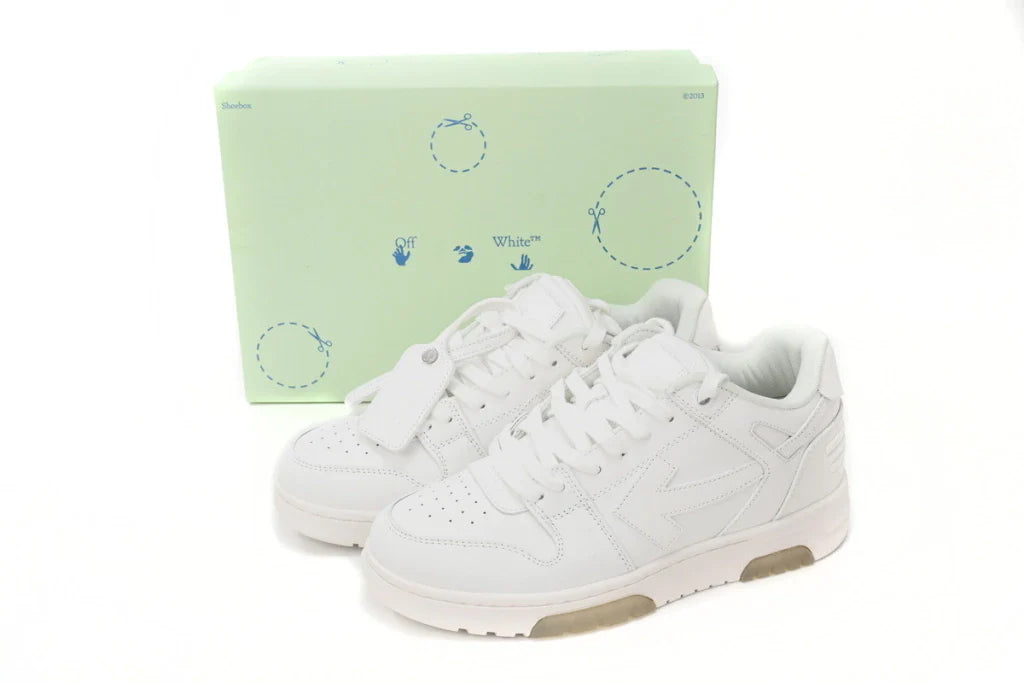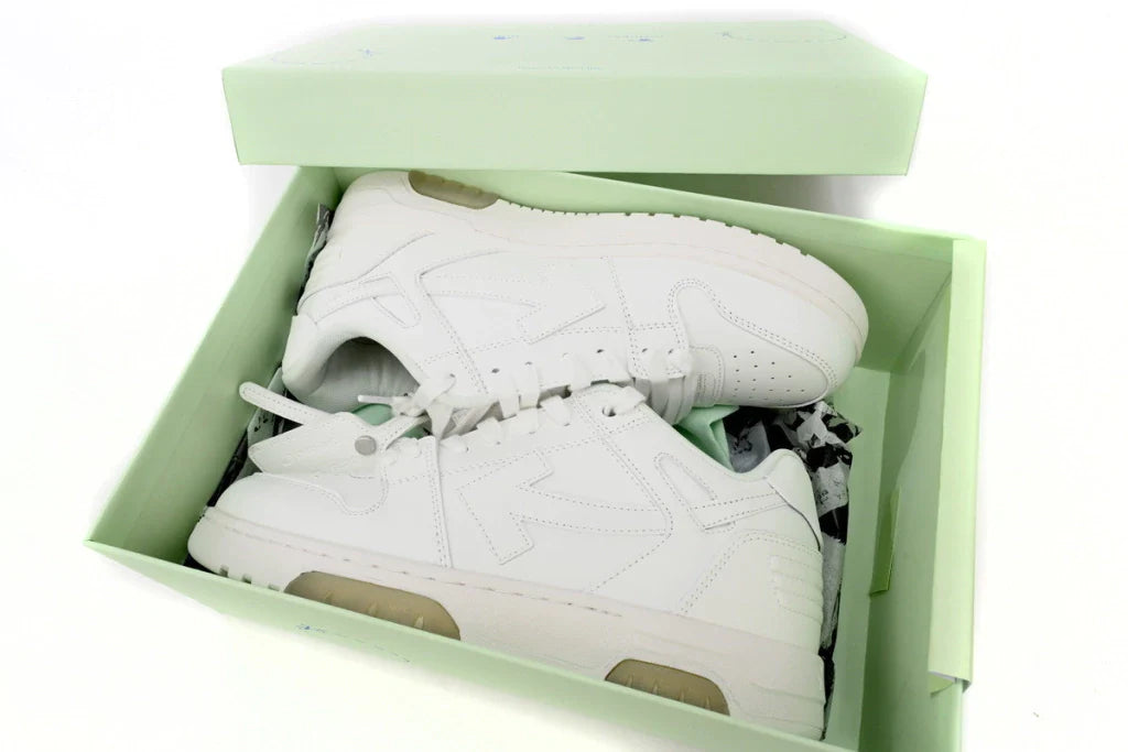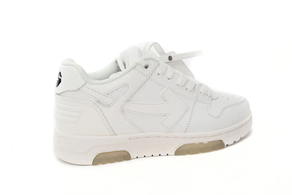 O OFF-WHITE Out Of Office White mistura o estilo esportivo com o luxo, trazendo o design arrojado da marca para um modelo casual e confortável. Com uma paleta de branco puro e detalhes inconfundíveis da marca, é perfeito para quem quer um visual moderno e único.