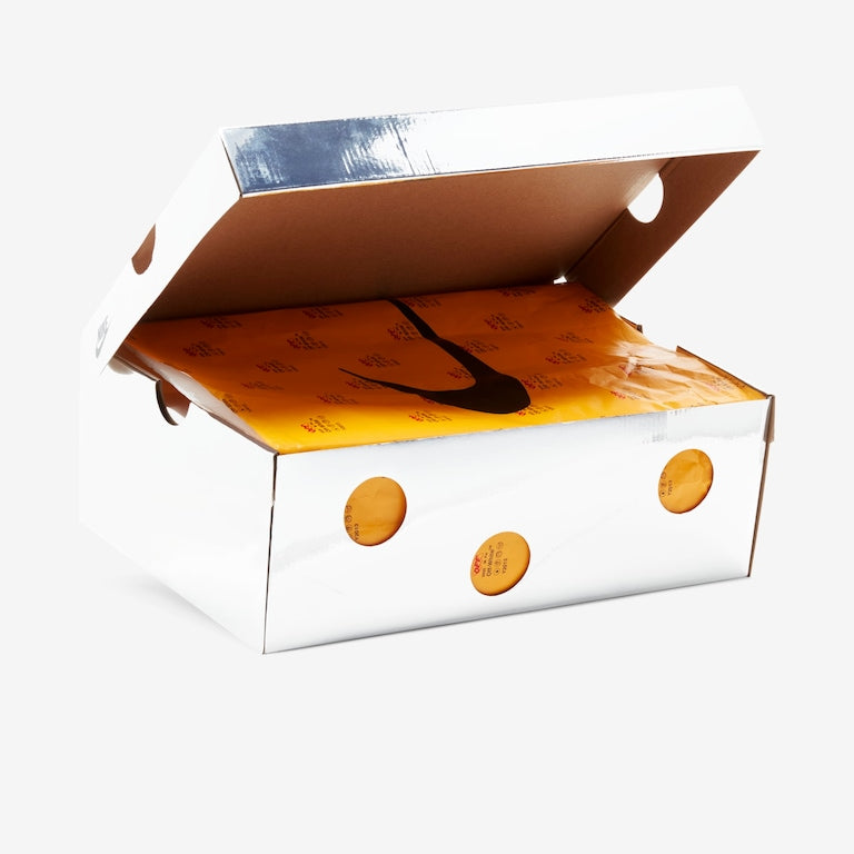 - Design desconstruído e disruptivo: A colaboração com Off-White traz elementos icônicos como costuras expostas, zip tie e texto gráfico, criando um visual único e ousado.